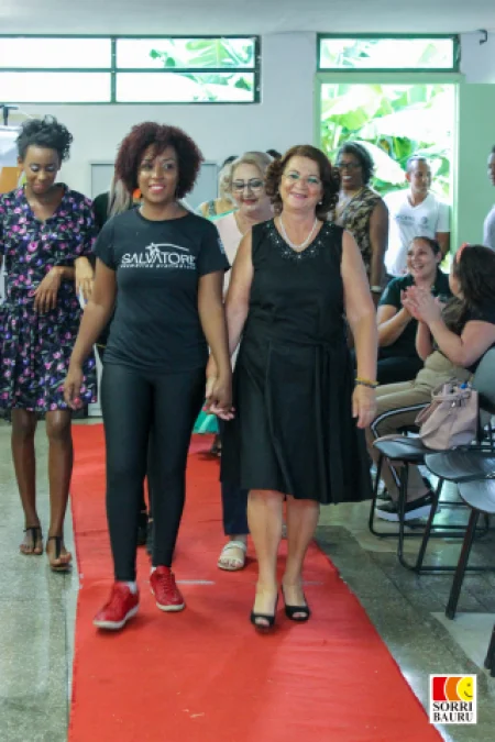 O fechamento da Ação foi em grande estilo: um desfile de moda com roupas confeccionadas por alunas do curso de Costura — e as modelos devidamente penteadas e maquiadas pelas alunas do curso de Auxiliar de Salão de Beleza.