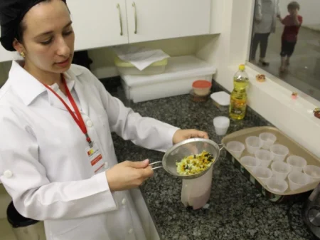 Por isso, a equipe de nutrição da SORRI realizou, do dia 17 a 20 de outubro, diversas oficinas de culinária, que visaram conscientizar sobre o desperdício de comida e orientar os usuários e seus familiares quanto à alimentação saudável, ensinando sobre os alimentos funcionais que atuam de forma preventiva no organismo e também sobre o armazenamento correto dos alimentos para maior permanência dos nutrientes e evitando riscos de contaminação. Para essas oficinas, foram disponibilizados cardápios diversificados, incluindo doces e salgados, e orientações sobre a alimentação diferenciada para cada fase da vida, de acordo com as necessidades de cada ciclo.