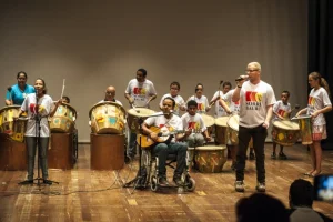 Em sua apresentação, os integrantes utilizaram técnicas de percussão tendo como base ritmos regionais e africanos e executaram as seguintes músicas: “Landin Pout Porrie” (FUNK), “I Feel Good (James Brown), “Descobridor dos Sete Mares” (Tim Maia) e “De Ladin (Dream Team do Passarinho).